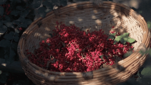 不同于花椒的平铺晾晒